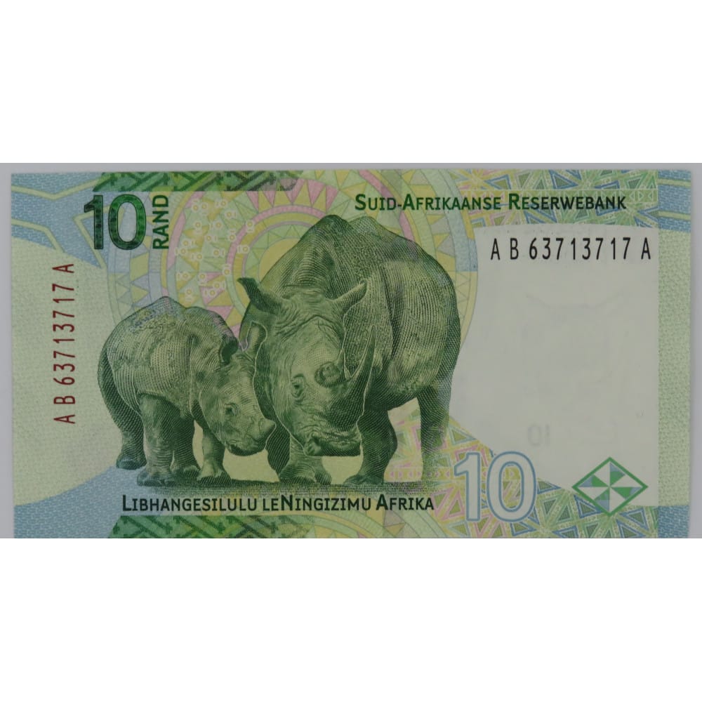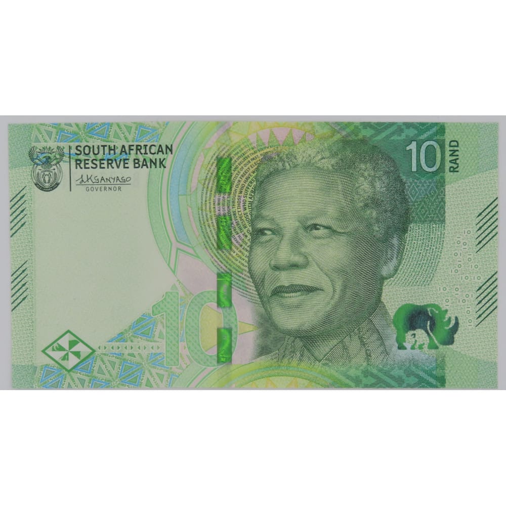 Afrika-Zuid 2023 in UNC kwaliteit. De waarde van het bankbiljet is 10 Rand en het thema is dat er een prachtige afbeelding van President Mandela is afgebeeld op dit bankbiljet