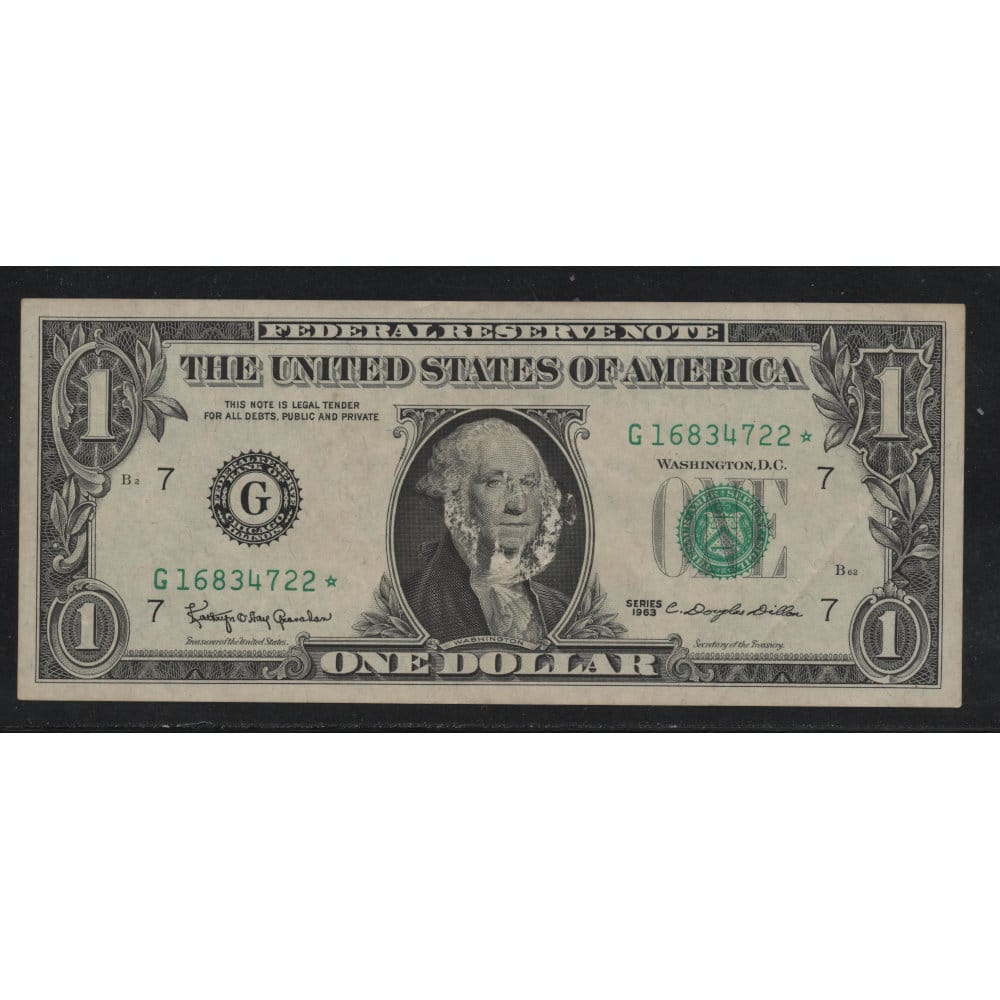 - Onderwerp: Dit 1 Dollarbiljet is in dat jaar 1963 bijgedrukt zie ster * achter het banknummer.