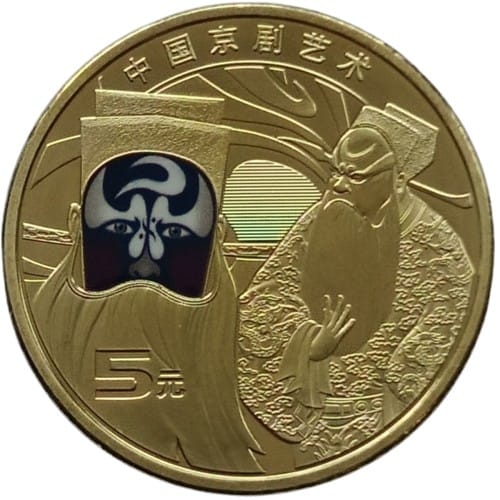 China 2025 in UNC kwaliteit. De waarde van de munt is 5 Yuan en het thema is een gekleurde afbeelding op de munt over de Opera in Beijing