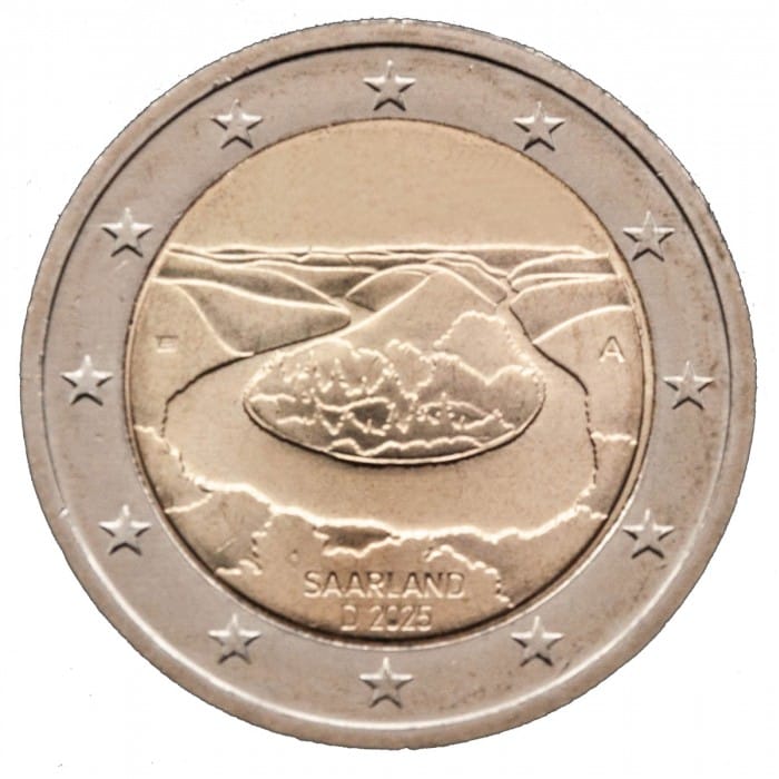 Duitsland 2025 in UNC kwaliteit. De waarde van de munt is 2 Euro en het thema is dat Saarland 1 van de 16 deelstaten van Duitsland is.