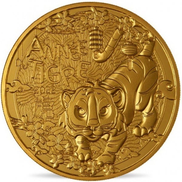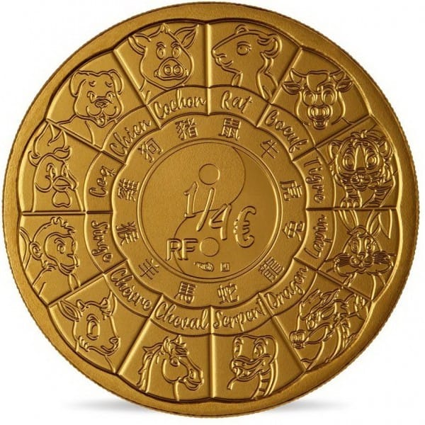 Frankrijk 2022 UNC kwaliteit. De waarde van de munt is 1/4 Euro en het thema is dat volgens de Chinese Dierenriem het jaar 2022 het jaar van de Tijger is.