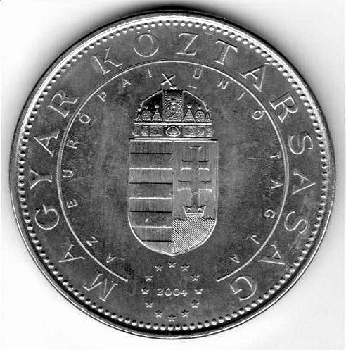 Uitgifte 1 / 10 nieuwe munten van Hongarije 2004 met de UNC kwaliteit. De waarde is 50 Forint en de voorstelling van de valuta is dat Hongarije als lid van de Europese Unie is toegelaten.
