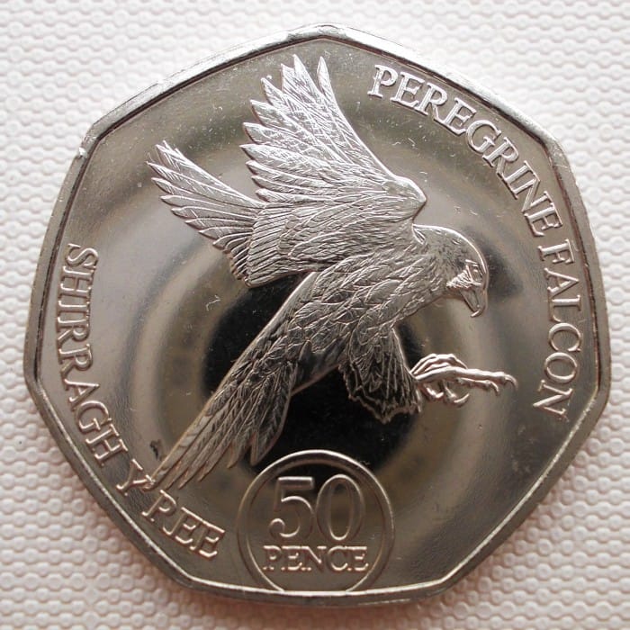 Isle of Man 2023 in UNC kwaliteit. De waarde van de munt is 50 Pence en het thema is een Roofvogel de Slechtvalk die afgebeeld is op deze munt.