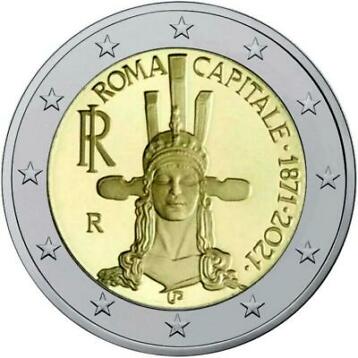 Italië 2021 in UNC kwaliteit. De waarde van de munt is 2 Euro en het thema is dat Rome de Hoofdstad van Italië was van 1871 – 2021