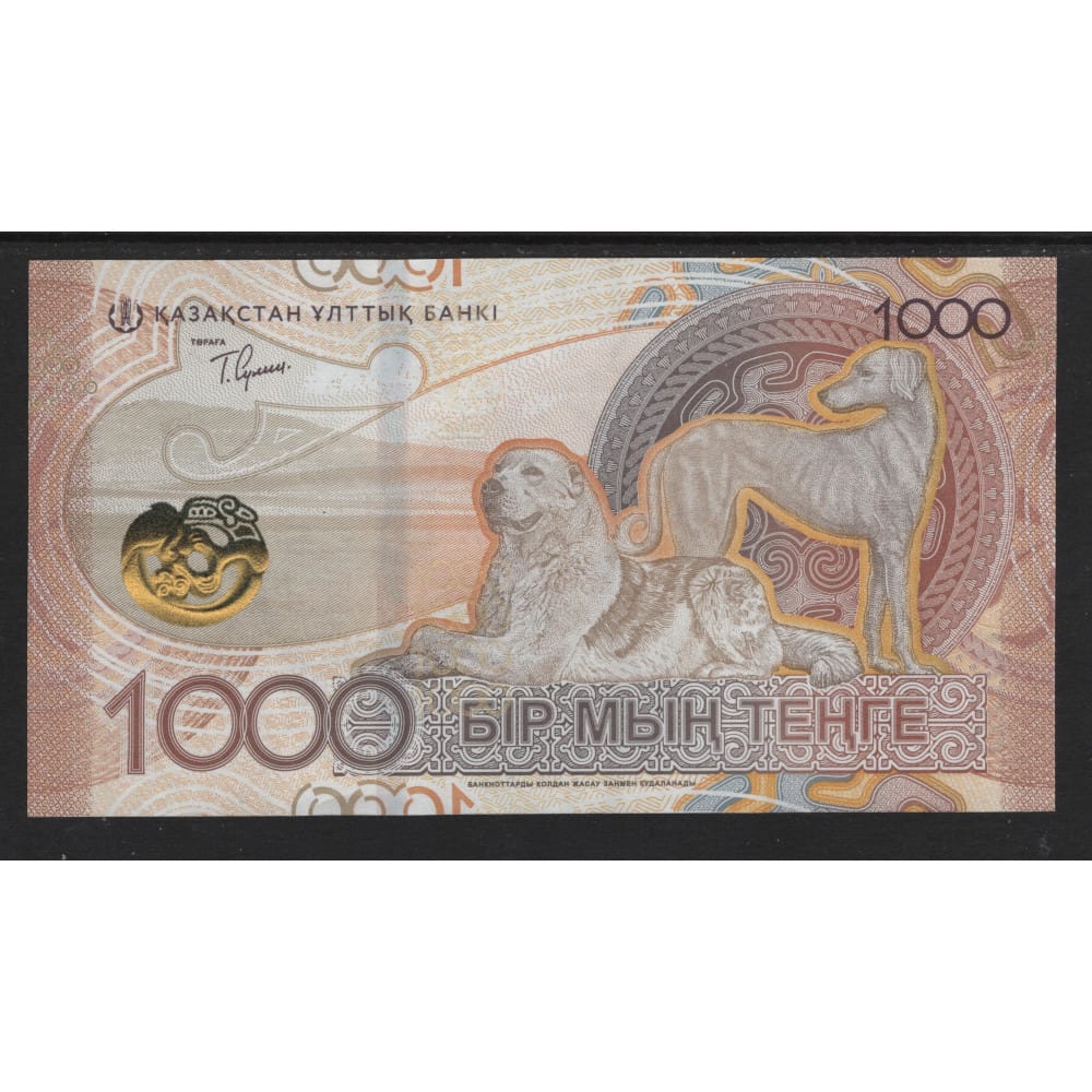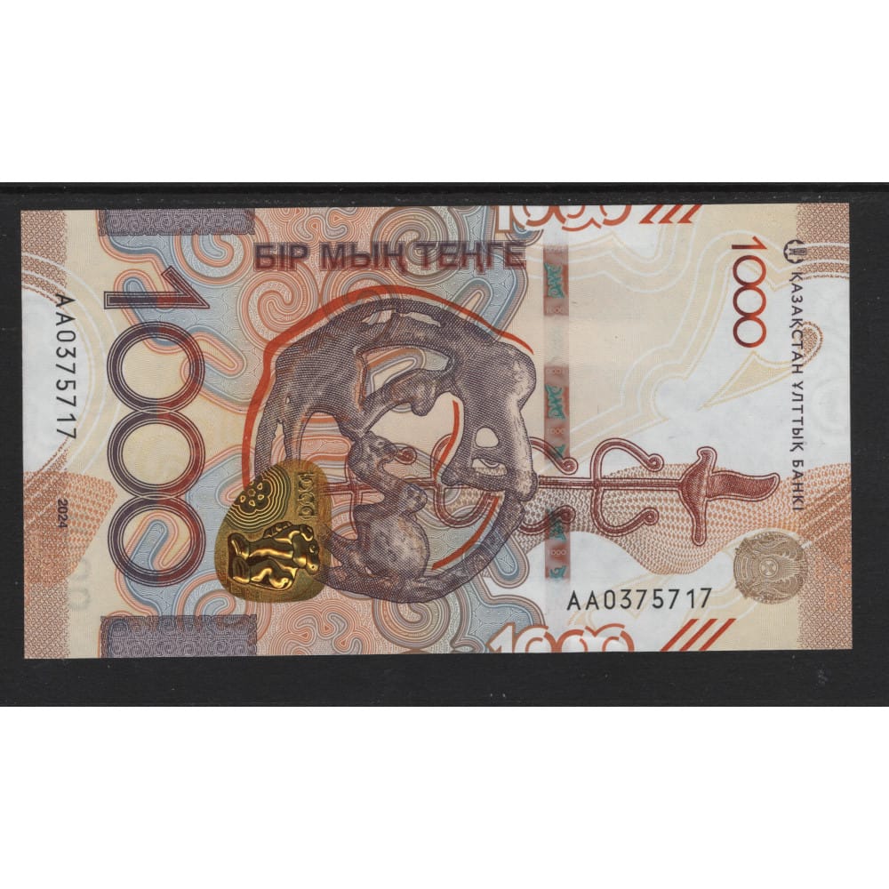 Kazakhstan 2024 in UNC kwaliteit. De waarde van het bankbiljet is 1000 Tenge en het thema is dat de Grafheuvel van Issyk Kurgan ia afgebeeld.