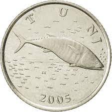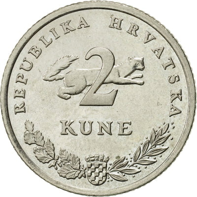 Kroatië 2005 in UNC kwaliteit. De waarde van de munt is 2 Kuna en het thema is een afbeelding van een vis.