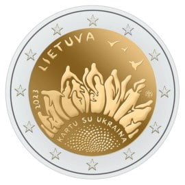 Litouwen 2023 in UNC kwaliteit. De waarde van de munt is 2 Euro en het thema is dat de Litouwse bevolking mee leeft met de Oekraïense bevolking en hopen maar dat de oorlog gauw is afgelopen.