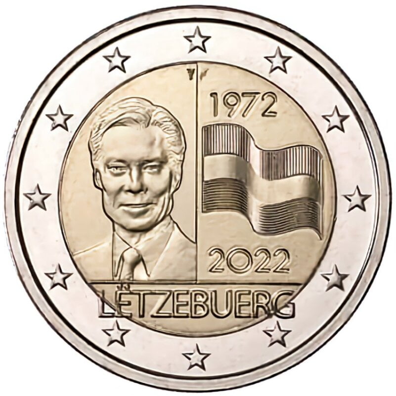 Luxemburg 2022 UNC kwaliteit. De waarde van de munt is 2 Euro en het thema is de 50e verjaardag van de Vlag van Luxemburg