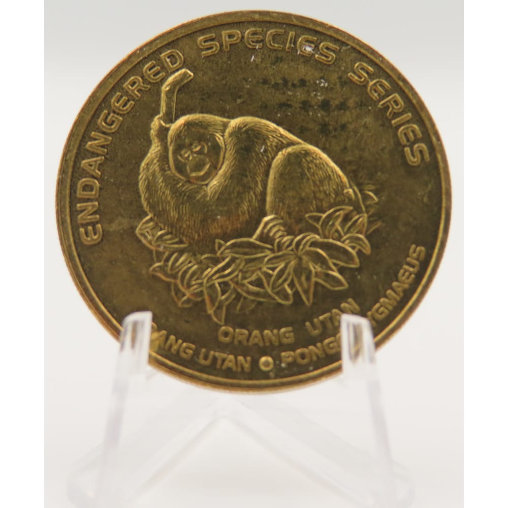 Maleisië 2003 in UNC kwaliteit. De waarde van de munt is 25 Sen en het thema is dat de Borneose Orang-Oetan.een bedreigde diersoort is.