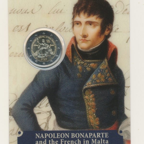 Malta 2023 in UNC kwaliteit. De waarde van de munt is 2 Euro in Blister en het thema is dat Napoleon Bonaparte een Franse Generaal was.