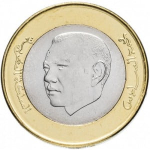 Marokko 2018 in UNC kwaliteit. De waarde van de munt is 10 Dirham en het thema is een afbeelding van bomen en een Fort.