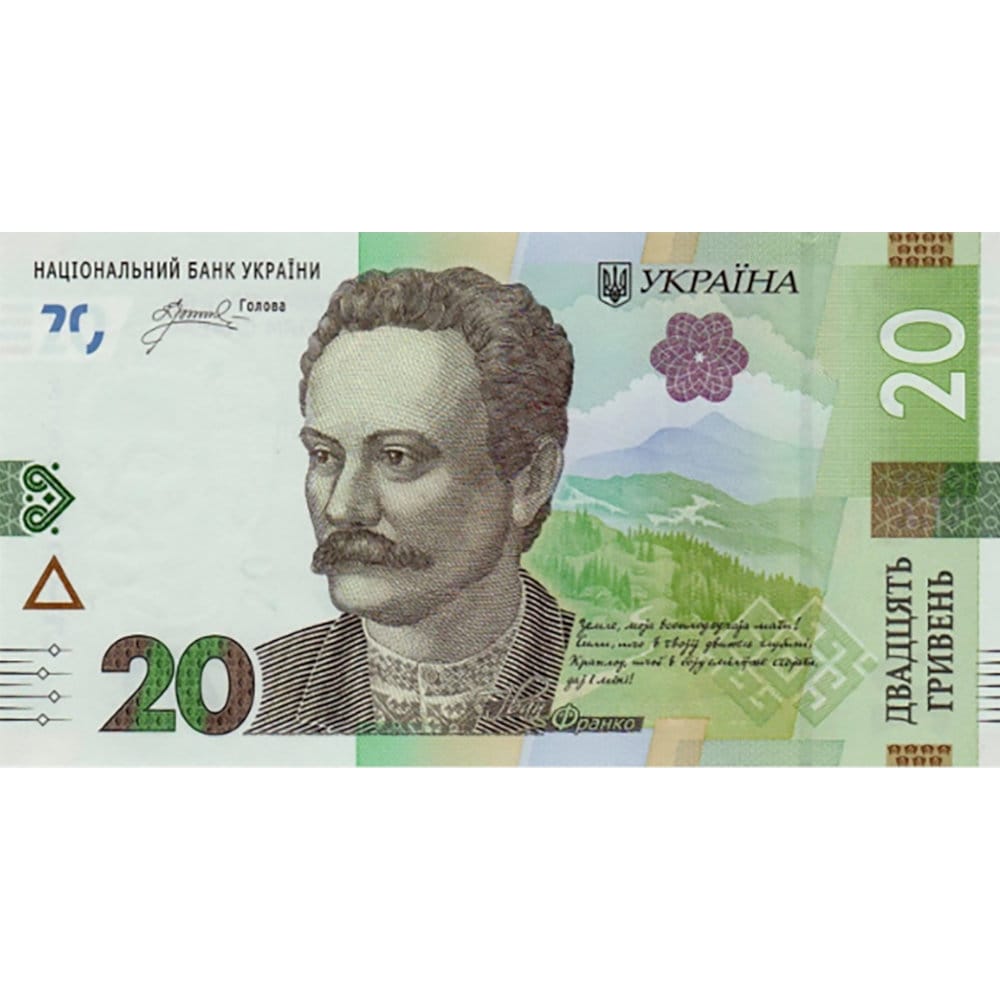 Oekraïne 2025 in UNC kwaliteit. De waarde van het 20 Hryven en het thema is een Criticus, Vertaler, Opiniejournalist van de vooraanstaand Oekraïens schrijver Ivan Franko