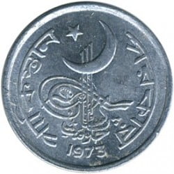 Pakistan 1973 UNC kwaliteit. De waarde van de munt is 1 Paise (F.A.O.) en de thema’s zijn afbeeldingen van Sterren, Maan en Torens.