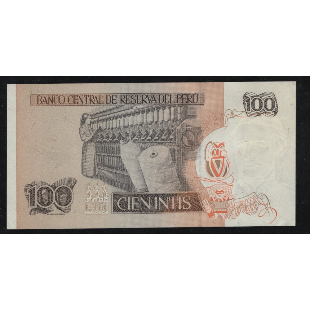 Peru 1987 in UNC kwaliteit. De waarde van het bankbiljet is 100 Intis en het thema is dat de een Peruaanse militair en politicus die meerdere keren president van Peru was Ramón Castilla