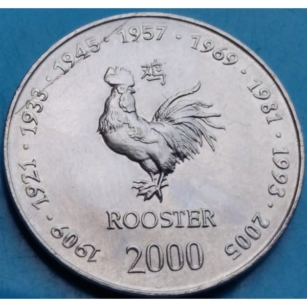 Somalië 2000 in UNC kwaliteit. De waarde van de munt is 10 Shillings en het thema is dat de Chinese Dierenriem de Haan als afbeelding op de munt staat.