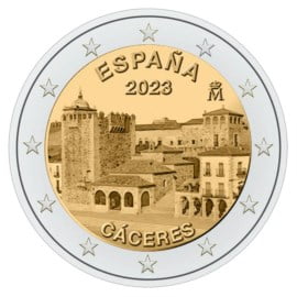 Spanje 2023 in UNC kwaliteit. De waarde van de munt is 2 Euro en het thema is het Unesco Werelderfgoed in de oude binnenstad van de stad Cáceres.