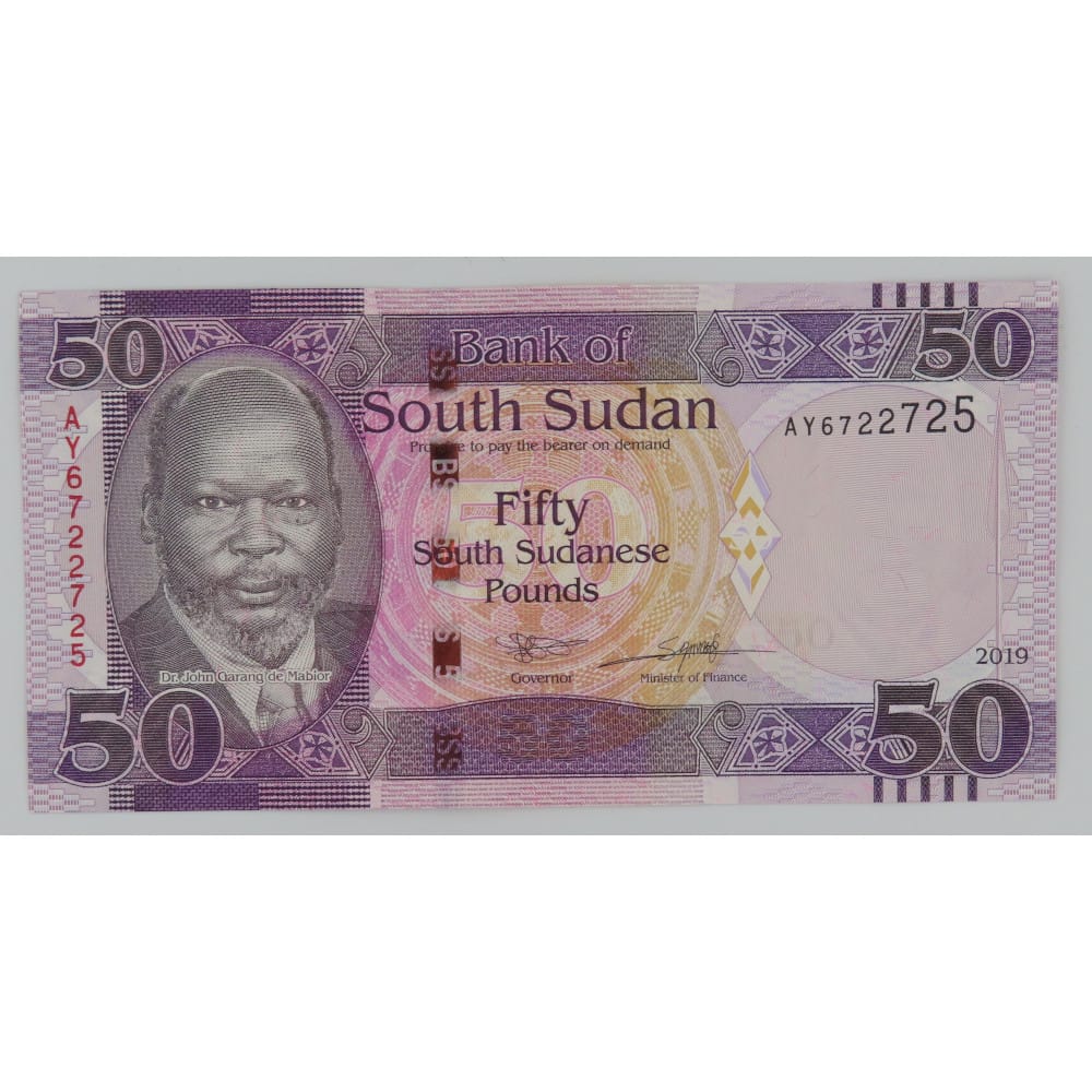 Sudan-South 2019 in UNC kwaliteit. De waarde van het bankbiljet is 50 Pounds en het thema is dat er een prachtige afbeelding van een kudde Olifanten is afgebeeld.