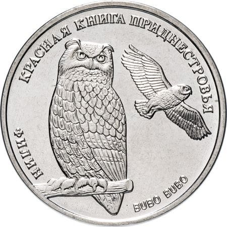 Transnistrië 2018 in UNC kwaliteit. De waarde van de munt is 1 Roebel en het thema is dat het een afbeelding is van de Oehoe die behoort tot de grootste Uilen ter Wereld