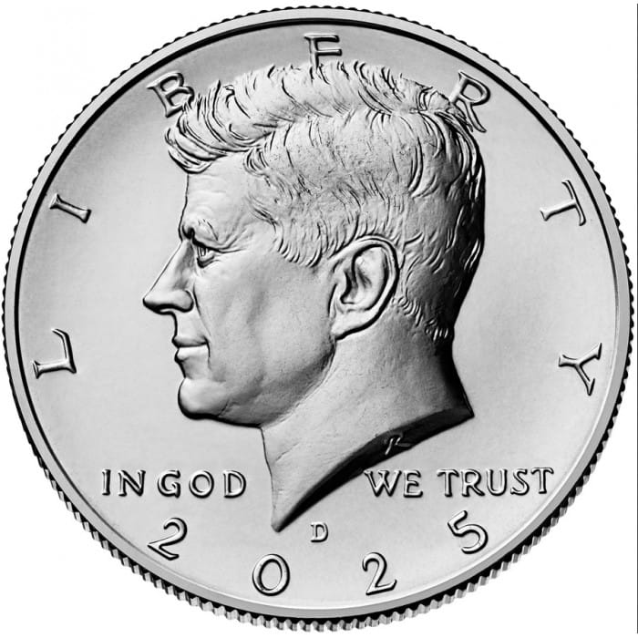 Verenigde Staten 2025 in UNC kwaliteit. De waarde van de munt is 50 Dollar Cent ( Halve Dollar ) en het thema is dat elk jaar een roulatie Herdenkingsmunt van President Kennedy wordt uitgegeven.