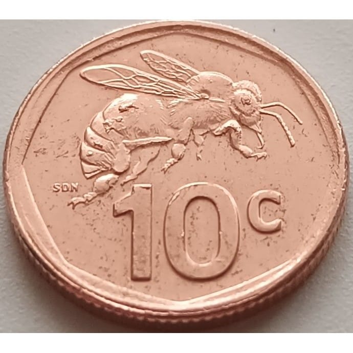 Zuid-Afrika 2023 in UNC kwaliteit. De waarde van de munt is 10 Cent en het thema is dat de Bij is afgebeeld op deze munt.