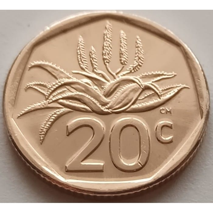 Zuid-Afrika 2024 in UNC kwaliteit. De waarde van de munt is 20 Cent en het thema is dat de Planten zijn afgebeeld op deze munt.